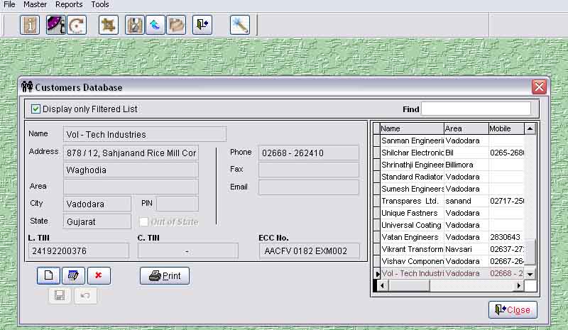 Customers Entry Screen