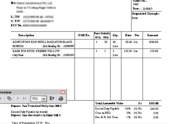 Delivery challan Preview