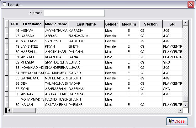 Find Student Screen